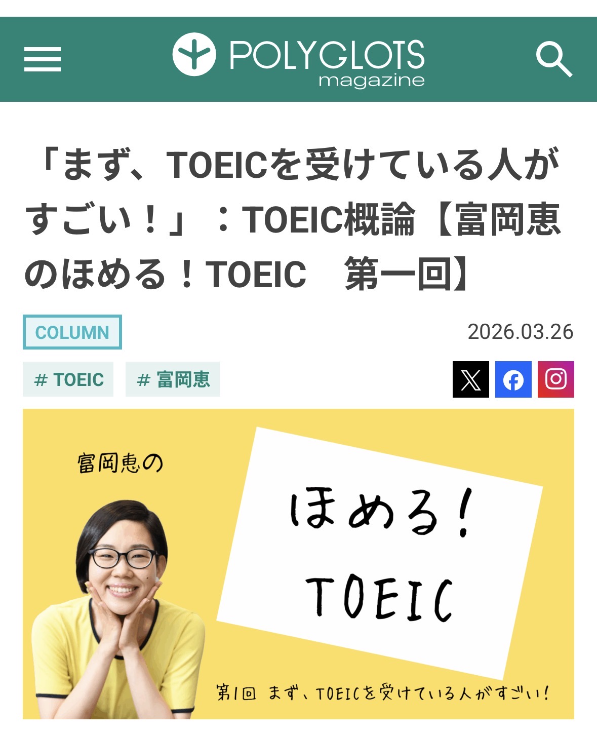 【新連載スタート】『富岡恵のほめる!TOEIC』